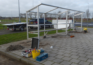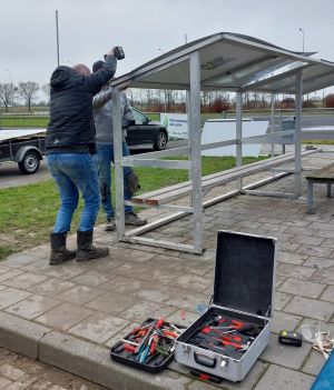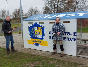 Onze mooie dug-out bij de skeelerbaan lag al sinds half oktober treurig op z'n kant, geveld door uitlopers van storm Babet. Maar nu staat hij weer overeind en ook definitief stormvast! Het resultaat van 2 zaterdagen, 5 klussers, 6 zware poeren, 6 dak- en wandplaten, 8 winddrukreductiesleuven, 16 schroefdraadmillimeters, diverse slijpschijven en een flink aantal zakken snelbeton. Met veel dank aan onze noeste bouwvakkers: Adrie Busscher, Jan Cnossen, Jelle Johan Hoomans, Marcel Kamstra en Peter Kruger. En ook aan Cor van der Meer, voor zijn advies en facilitaire ondersteuning.