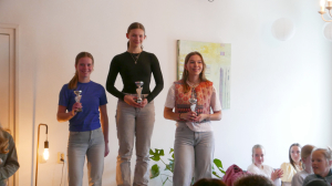 Zondagmiddag 16 maart waren alle IJssterren uitgenodigd voor de slotmiddag van het schaatsseizoen. Met zo'n zestig leden, van de jongste tot de oudste categorie, was er een mooie opkomst en werd het - dankzij de geweldige organisatie van de Jeugdcommissie - een prachtig evenement. Voor hun aansprekende wedstrijd- en trainingsresultaten en voor de maar liefst 10 clubrecords die dit seizoen zijn gesneuveld, werd een groot aantal jeugdige en iets minder jeugdige rijders gehuldigd met een fraaie beker of medaille. Nog meer moois was er te winnen met het Rad van Fortuin, waarvoor de Jeugdcommissie een prachtig prijzenpakket bij elkaar had gekregen. Zo werd het bij een gastvrij Lokaal 55 al met al een zeer gezellige en geslaagde middag. En natuurlijk hebben we de foto's nog!